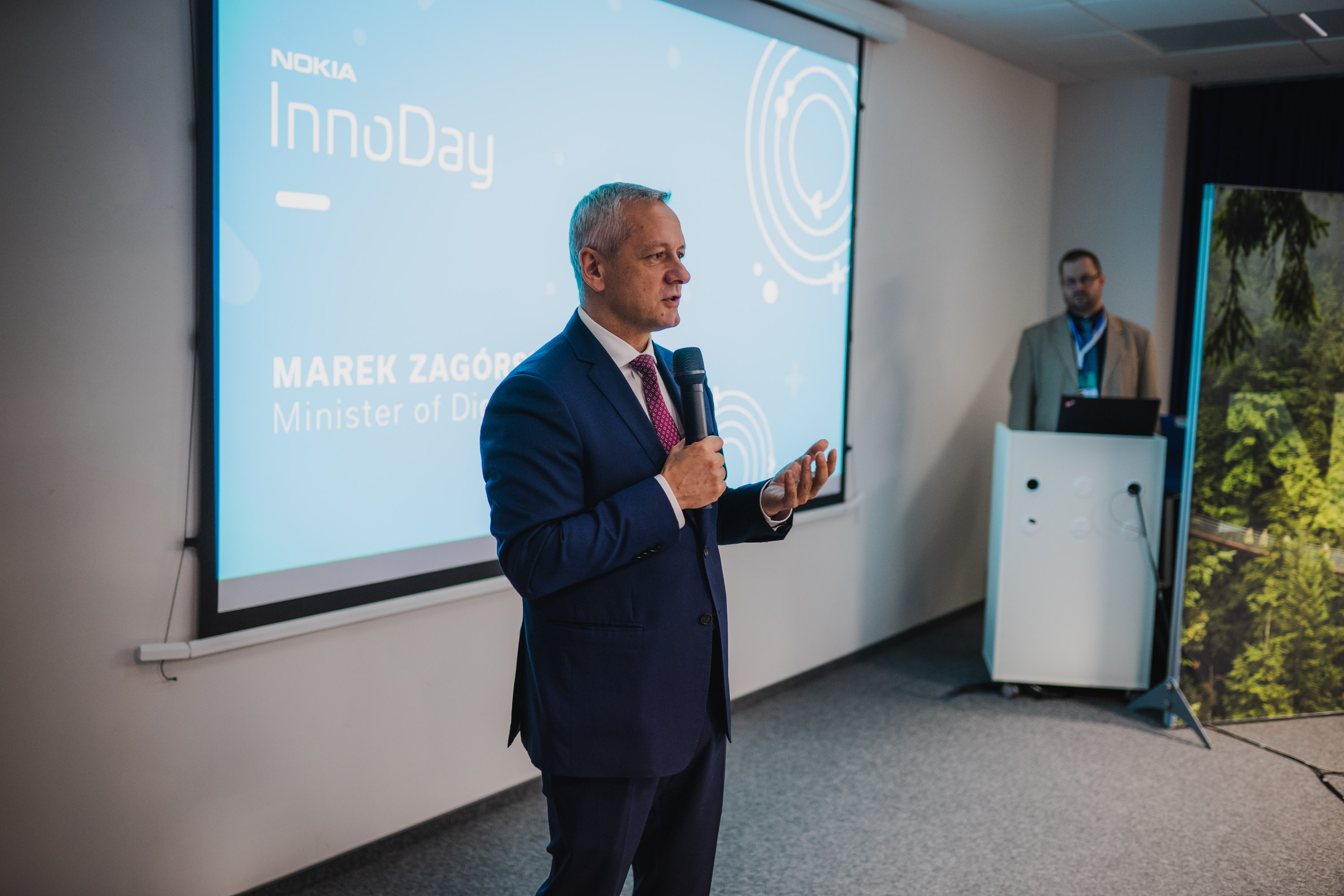 Szerszy obraz  mapy rozwoju, już nie tylko wrocławskiej, ale polskiej telekomunikacji rozwinął Minister Cyfryzacji,  Marek Zagórski, który w swoim wystąpieniu skupił się głownie na przedstawieniu planów rozwoju sieci 5G nad Wisłą. Plany zakładają rozdysponowane wśród operatorów sieci komórkowych czterech bloków o szerokości 50 MHz z pasma o częstotliwości 3,7 GHz. Rozważane jest także udostępnienie pasma częstotliwości 26 GHz. Oznacza to, ze już w 2020 roku przynajmniej jedno duże polskie miasto, będzie w pełni przygotowane na 5G, a pięć lat później z tej technologii będą mogli korzystać mieszkańcy wszystkich większych aglomeracji. Szef Resortu Cyfryzacji wspomniał również o ułatwieniach, które Państwo Polskie szykuje dla telekomów, mowa tu głównie o pomocy przy budowie nadajników, ułatwienia legislacyjne, czy obniżenie kosztów za zajęcie pasa drogowego przez stacje BTS.